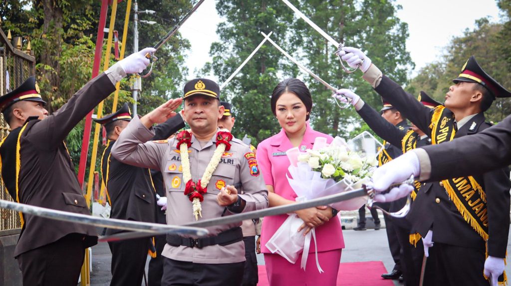 Sebagai bentuk penyambutan, ia menerima kalungan bunga dan disuguhi tarian khas sebelum melewati gerbang kehormatan Pedang Pora. Prosesi ini dilakukan oleh para perwira yang berbaris dengan pedang terhunus membentuk gapura, menciptakan suasana penuh kehormatan saat Kapolres baru memasuki markas kepolisian.
