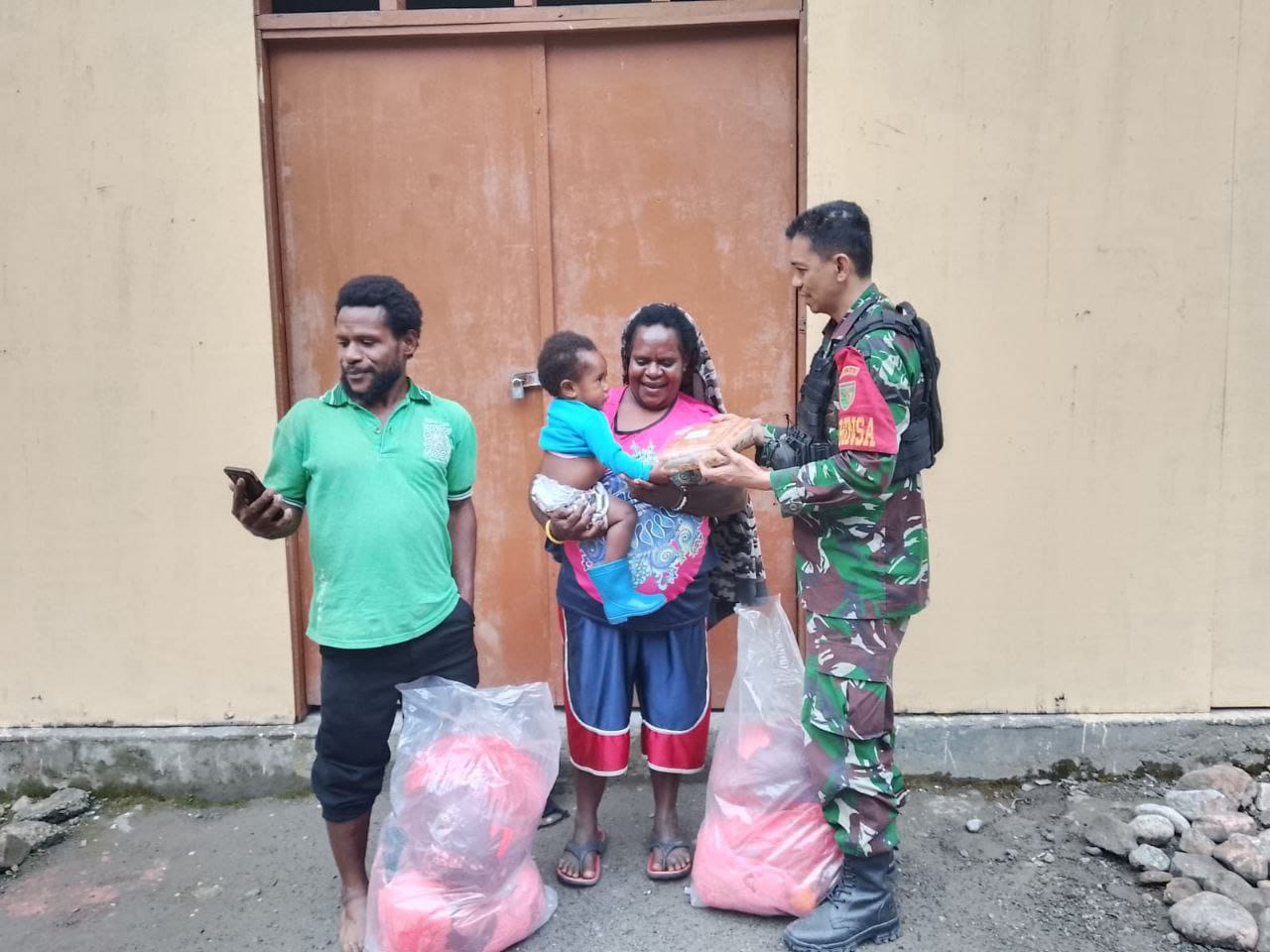 Timika, SemeruPost – Guna terus meningkatkan hubungan baik dan memperkokoh kemanunggalan, Babinsa Koramil 1710-04/Tembagapura Sertu Aripin Cepa melaksanakan Komunikasi Sosial (Komsos) sembari memberikan bantuan sembako kepada Warga binaan di Kp. Banti 2, Distrik Tembagapura, Kab. Mimika, Jumat (18/07/2025).