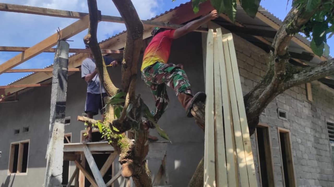 Ternate, SemeruPost – Satgas TMMD ke-124 Kodim 1501/Ternate bersama warga Desa Jarakore, Kecamatan Sahu, Kabupaten Halmahera Barat, gotong royong dalam pemasangan atap rumah milik Ibu Nursia Alhaser pada program bedah Rumah Tidak Layak Huni (RTLH), Kamis (29/5/2025).