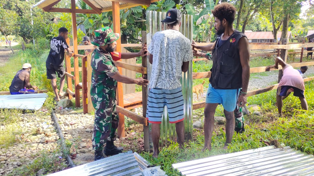 Puncak Jaya, SemeruPost – Dalam rangka mengimplementasikan 8 Wajib TNI yang kelima, Babinsa Pos Ramil 1714-07/Fawi, Sertu Agus Bonggoibo bersama masyarakat melaksanakan karya bhakti pembuatan pagar gereja Kampung Soi Distrik Fawi, Kabupaten Puncak Jaya, Provinsi Papua Tengah, Kamis (23/01/2025).
