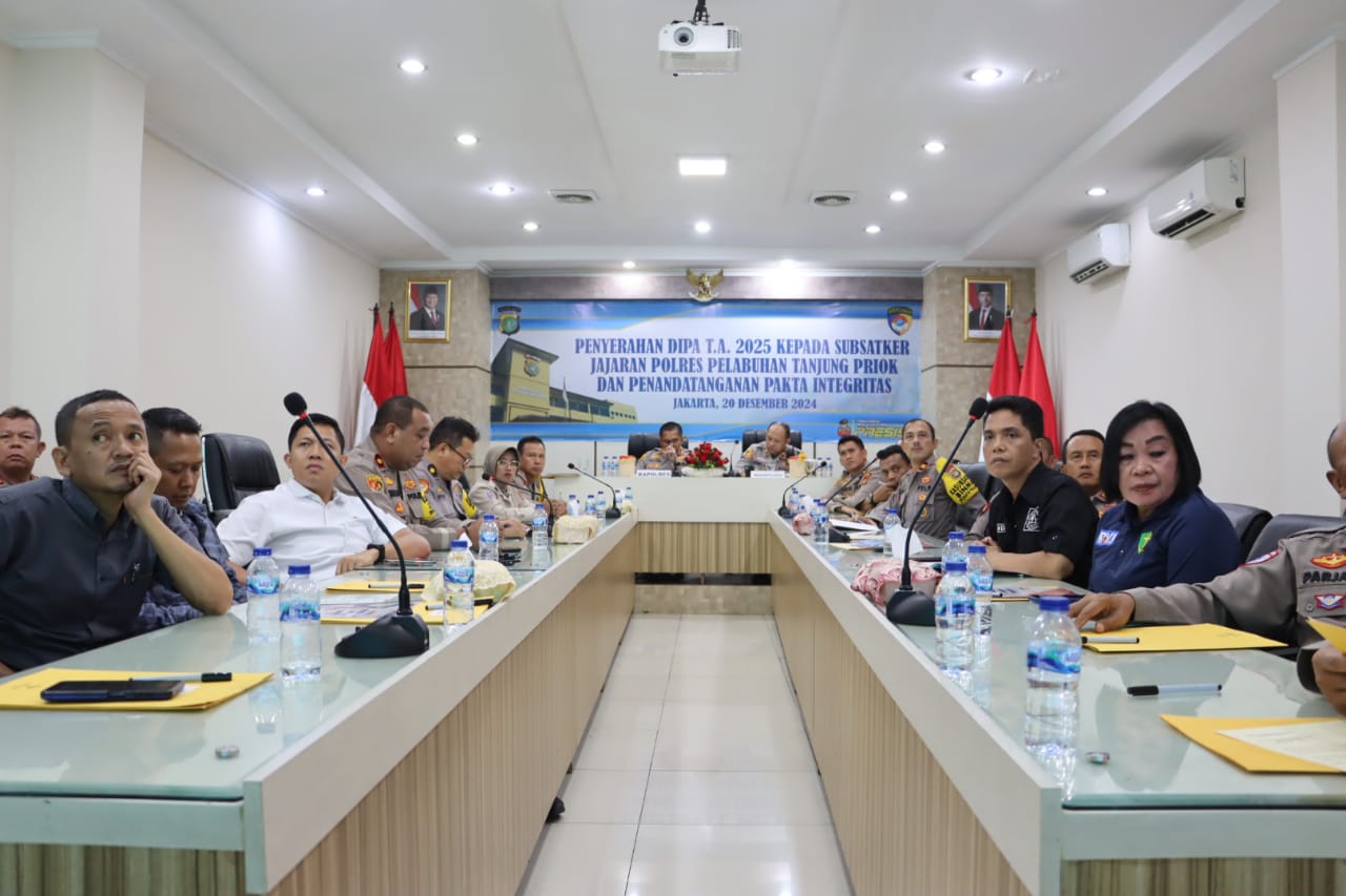 Jakarta, SemeruPost — Polres Pelabuhan Tanjung Priok melakukan kegiatan Penandatanganan Pakta Integritas dan penyerahan Daftar Isian Pelaksanaan Anggaran (DIPA) Tahun Anggaran (TA) 2025, di Rupatama Polres Polres Pelabuhan Tanjung Priok, Jumat (20/12/2024).