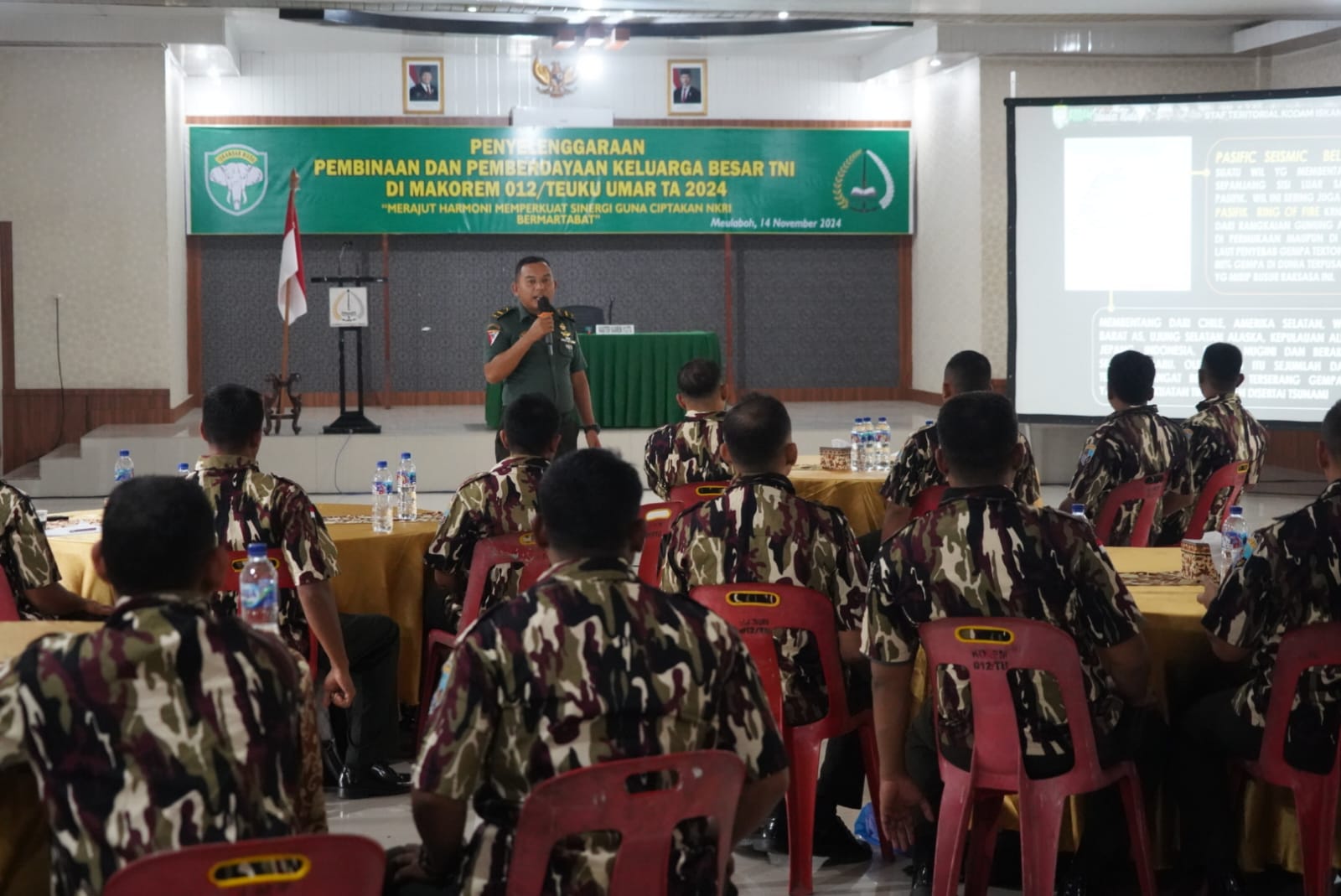 Meulaboh, SemeruPost – Korem 012/TU menggelar kegiatan pembinaan dan pemberdayaan Keluarga Besar TNI (KBT) pada Kamis (14/11/2024) di Aula Bhakti Gara Makorem 012/TU, Desa Ujong Tanoh Darat, Kec. Johan Pahlawan, Kab Aceh Barat. Kegiatan ini bertujuan mempererat silaturahmi dan meningkatkan peran KBT, khususnya FKPPI, dalam mendukung tugas-tugas TNI dan program pembangunan nasional.