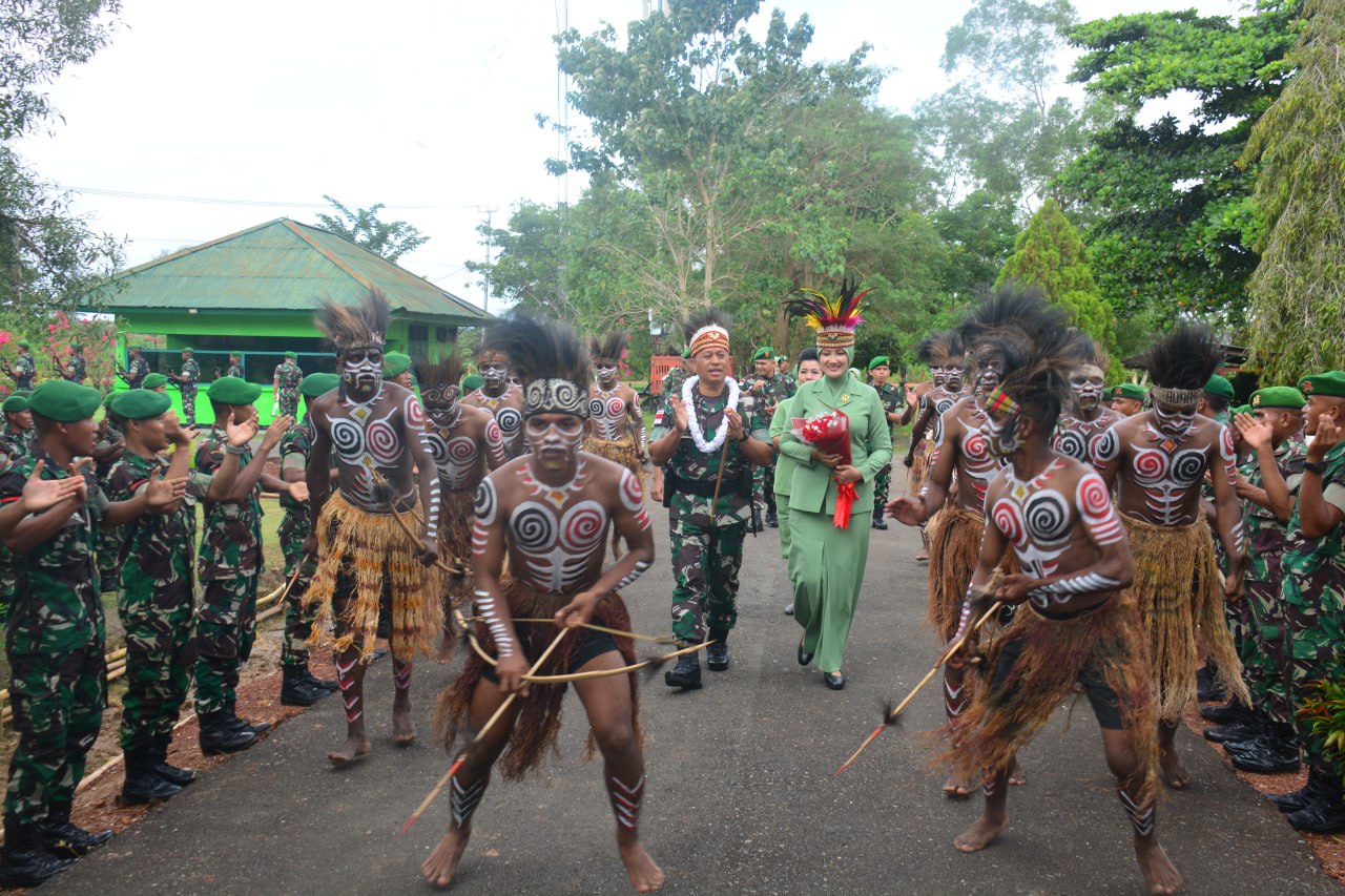 Merauke, SemeruPost – Danrem 174/ATW Brigjen TNI Agus Widodo S.I.P., M.Si. di dampingi Ketua Persit KCK Koorcab Rem 174 Ny. Dyane Dorothy Aurora beserta Kasi Ops Kasrem dan Kasi Renprog Korem 174/ATW mengunjungi Mako Yonif 757/Ghupta Vira yang saat ini masih menempati Kompi Senapan C di Kampung Ivimahad, Distrik Kurik, Kab. Merauke, Provinsi Papua Selatan, Rabu (15/03/2023).