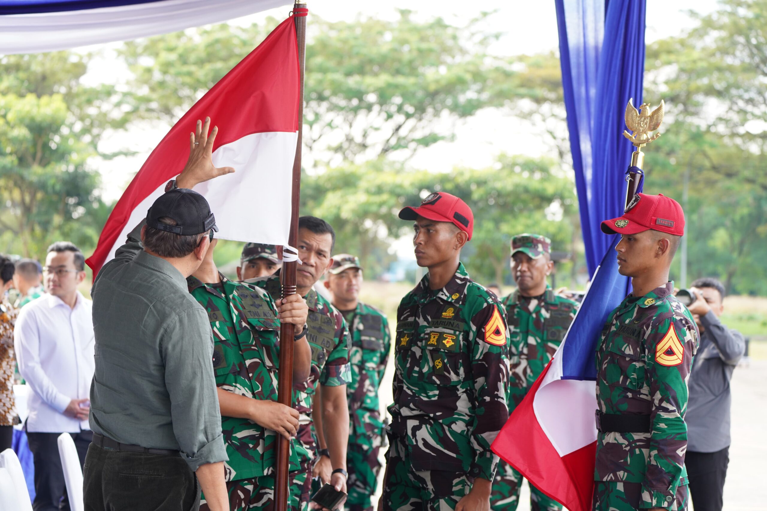 Pada kesempatan tersebut, Panglima TNI bersama Menhan RI berkomunikasi langsung dengan para pasukan dan mengecek perlengkapan serta kesiapan pakaian yang akan digunakan.