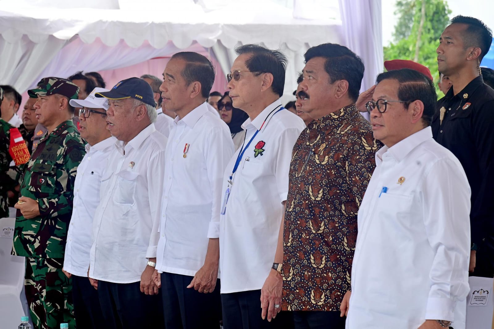Turut hadir pada kegiatan tersebut di antaranya para Menteri Kabinet Indonesia Maju, Plt. Kepala Otorita IKN Basuki Hadimuljono, Plt. Wakil Otorita IKN Raja Juli Antoni, Pj. Gubernur Kalimantan Timur Akmal Malik, Pj. Bupati Penajam Paser Utara Makmur Marbun, Kurator Ibu Kota Negara (IKN) Nusantara Ridwan Kamil beserta para undangan lainnya. (Foto: BPMI Setpres)