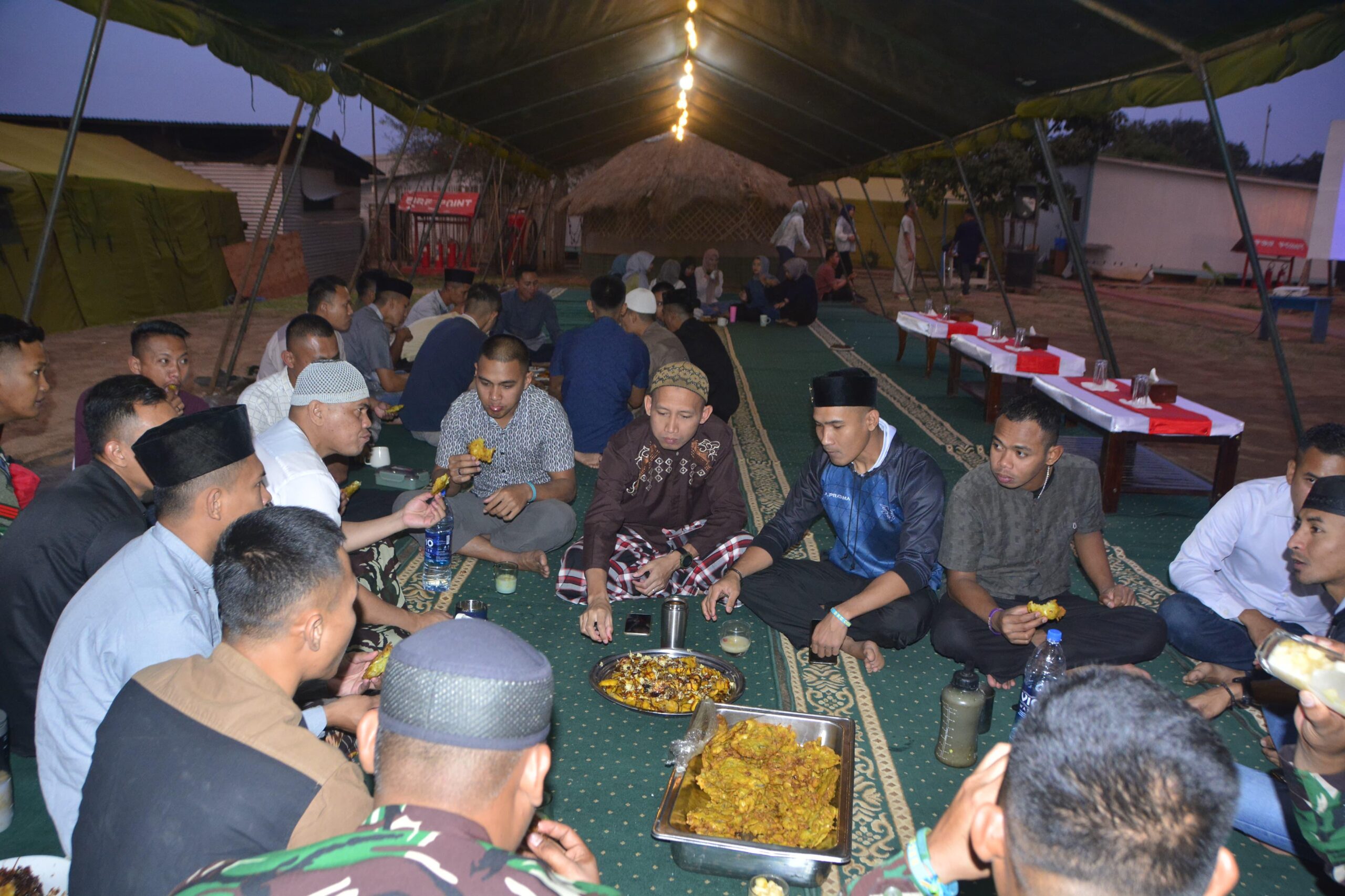Kegiatan dilanjutkan dengan ibadah Maghrib dan makan bersama seluruh prajurit Satgas, serta diakhiri sholat tarawih berjamaah yang dilaksanakan di lapangan Rear base Camp, Satgas Indo RDB XXXIX-E/MONUSCO.