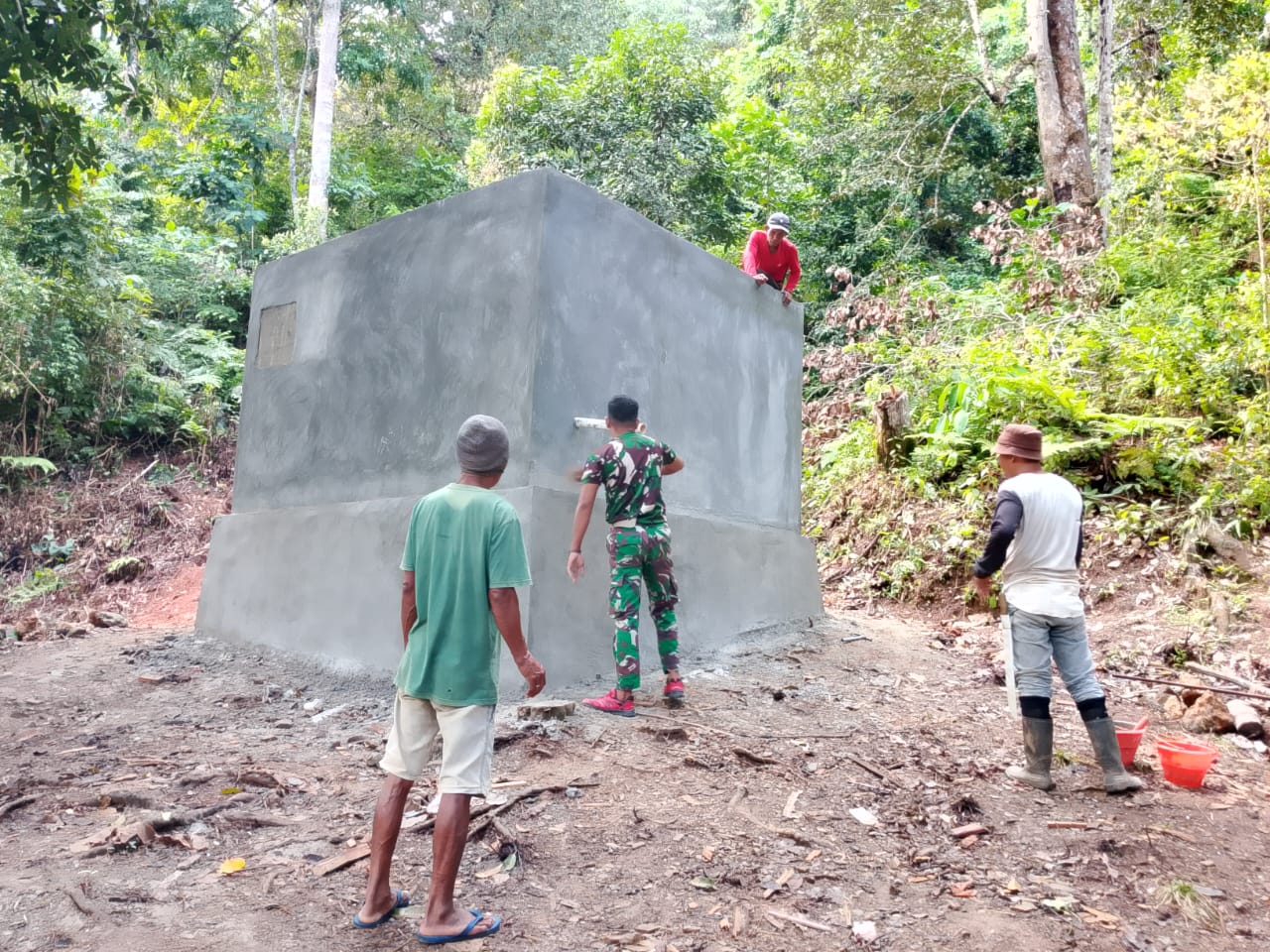 Dengan pengerjaan yang teliti, Satgas TMMD memastikan bahwa bak penampungan air dapat berfungsi dengan baik untuk memenuhi kebutuhan air bersih bagi warga dan mendukung program ketahanan pangan di Desa Malbufa, Kecamatan Sanana Utara, Kabupaten Kepulauan Sula, Maluku Utara.