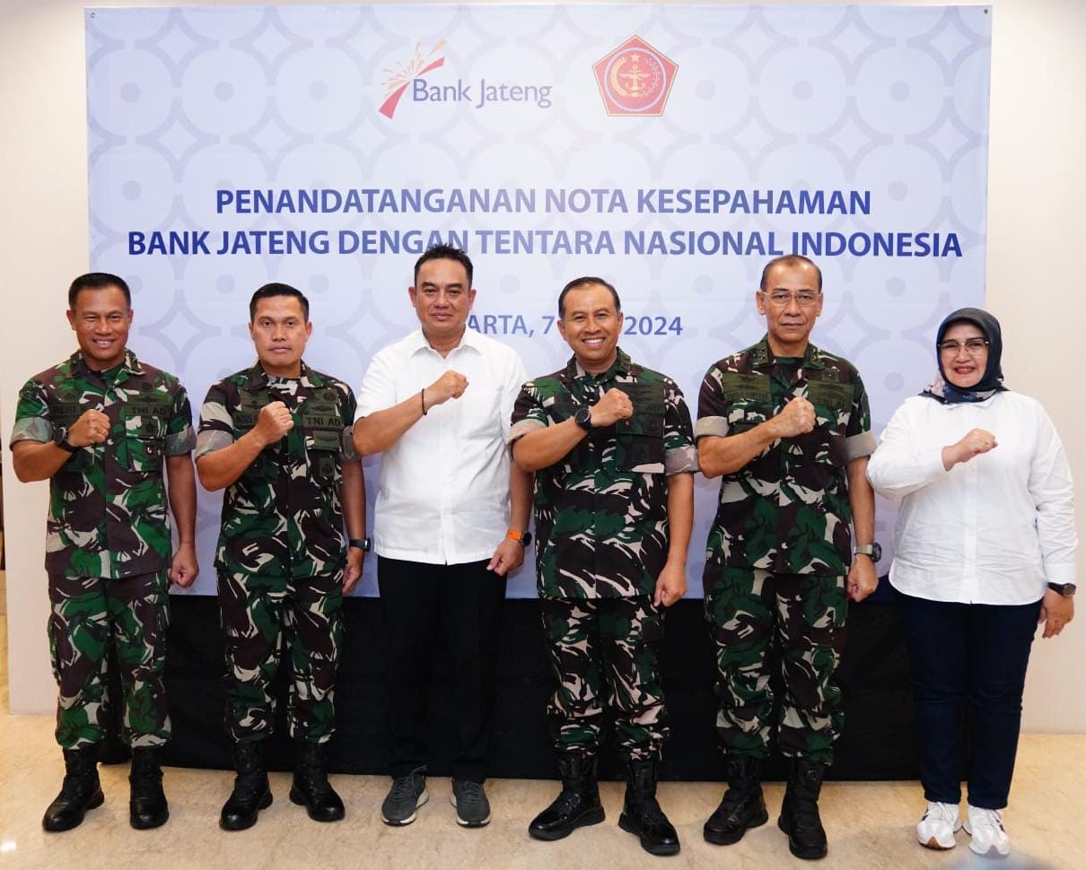 Jakarta, SemeruPost – Markas Besar Tentara Nasional Indonesia (Mabes TNI) yang diwakili Aspers Panglima TNI Marsda TNI Mohammad Syafii, S.I.P., M.M. menandatangani nota kesepahaman atau Memorandum of Understanding (MoU) tentang Penyediaan dan Pemanfaatan Jasa Layanan Perbankan bagi Anggota TNI, dengan Plt. Direktur Utama Bank Jateng Irianto Harko Saputro, bertempat di Ruang VVIP Minangkabau Suvarna Golf Halim Perdanakusuma, Jakarta Timur, Jumat (7/6/2024).