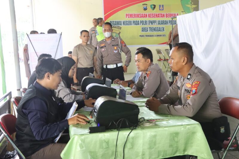 SemeruPost,Trenggalek-Ratusan personel Polres Trenggalek hari ini mengikuti pemeriksaan kesehatan berkala atau yang lebih dikenal dengan sebutan Rikkesla. Rikesla ini sengaja digelar sebagai salah satu upaya menjaga kesehatan dan stamina anggota tetap sehat dan prima. Kamis, (23/1).
