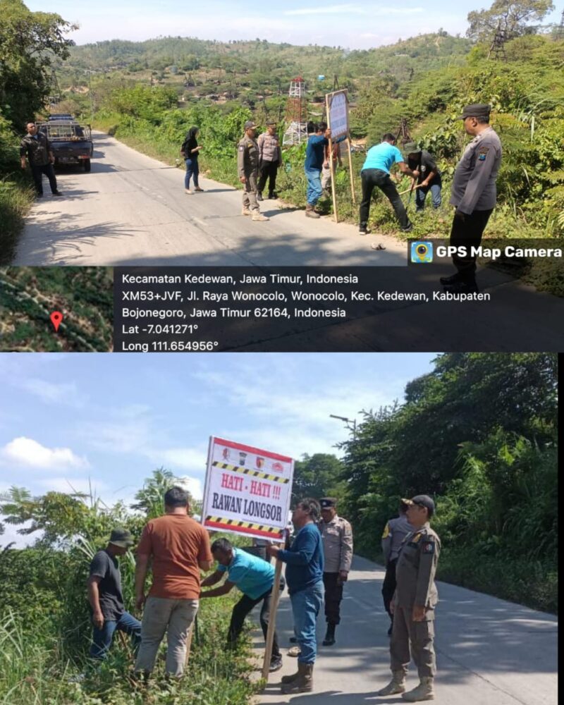 SemeruPost,Bojonegoro –Untuk menghindari adanya korban, Kapolsek Kedewan dan Personil lakukan tindakan kepolisian berupa pemasangan notice board di lokasi terjadinya longsor di Desa Wonocolo Kec. Kedewan Kab. Bojonegoro. Senin (15/7/2024).