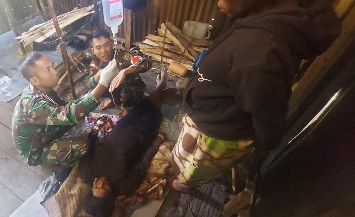 Bintara kesehatan Pos Kiwirok Serka Agus dengan sigap mendatangi rumah warga yang mengalami pendarahan dan segera melakukan tindakan medis guna menyelamatkan warga yang mengalami pendarahan cukup lama tersebut. Keluarga menyambut haru usaha yang dilakukan Satgas yang berupaya menyelamatkan jiwa sang ibu.