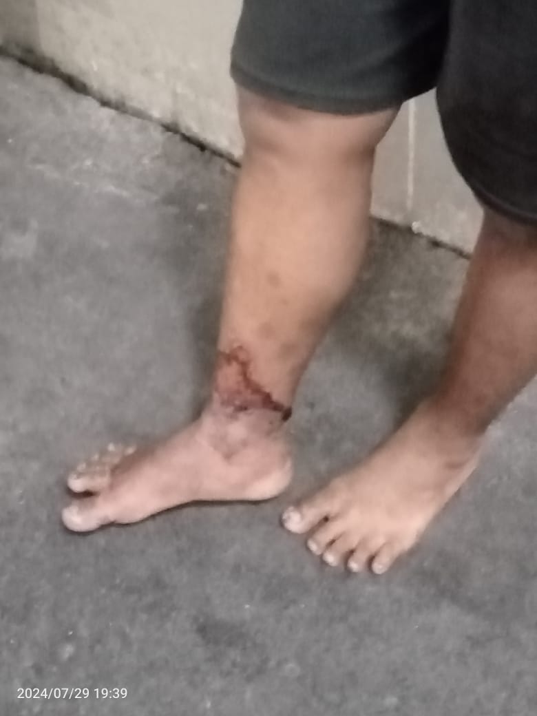 AA pun mencoba untuk memadamkan api yang menyala dikakinya tanpa bantuan siapapun. Usai memadamkan api melihat AA mengalami luka saksi mata yang tak sengaja lewat langsung membawa AA kerumahnya untuk diobati dulu. Usai kejadian itu selama beberapa hari AA tidak pulang kerumahnya karena merasa takut alhasil selama beberapa hari AA menumpang dirumah saksi yang merupakan temannya.